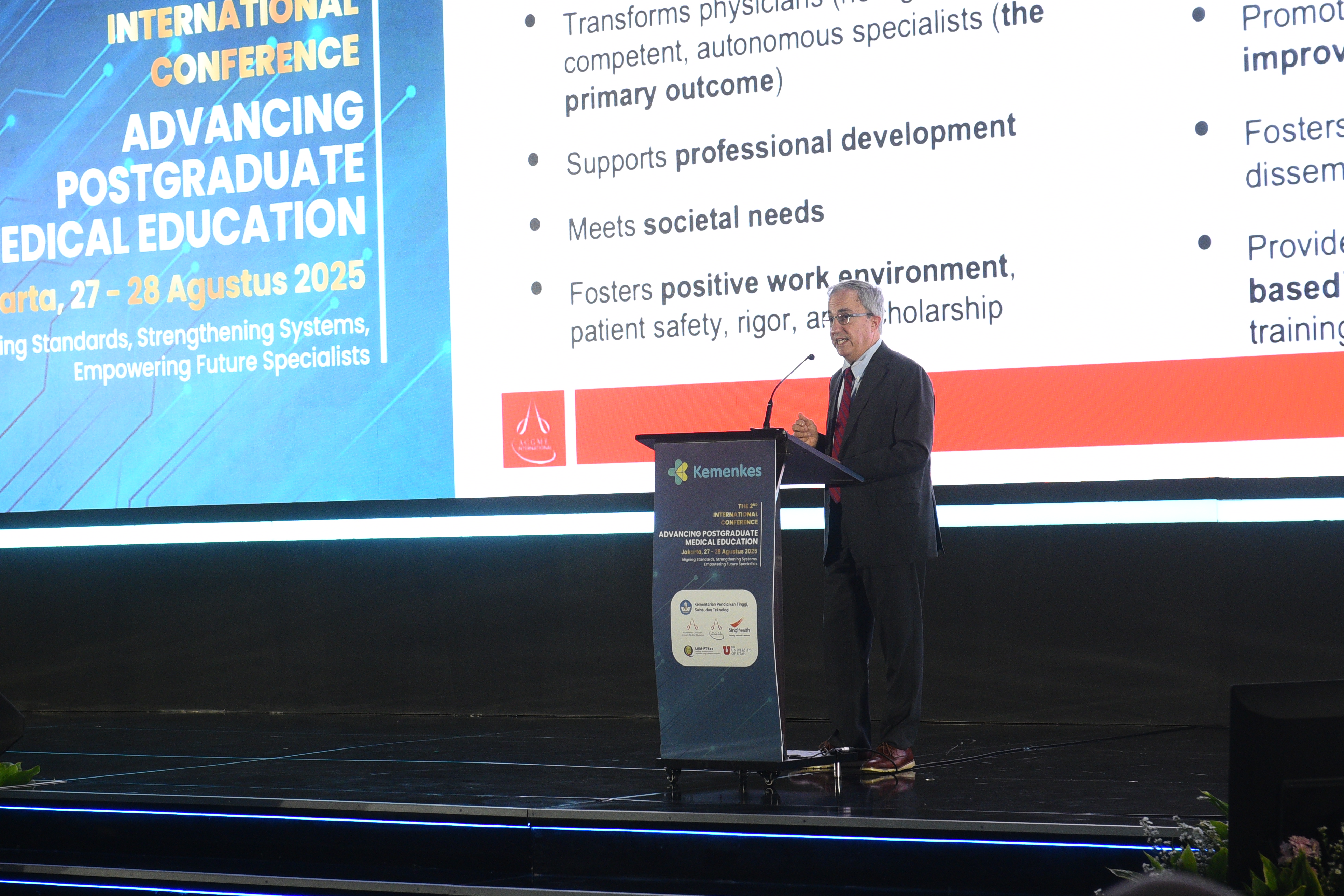 During the two-day conference, sponsored by Indonesia’s Ministry of Health, ACGME-I Vice President Halah Ibrahim, MD, MEHP took part in several panel discussions, speaking about building institutional foundations for high-quality GME, developing and empowering clinical educators, and the significance and opportunities in medical education research. Topics related to well-being were addressed by Accreditation Council for Graduate Medical Education (ACGME) Chief Education Officer Timothy P. Brigham, MDiv, MS, PhD.